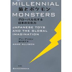 日本語版を出すに際して出版社から「菊とポケモン」というタイトルを提示されてショックを受けたと著者は書いている。いわずと知れた「菊と刀」は「日本と日本人」の文化の特殊性を徹底して指摘しているものであるが本書は日本発信の文化がグローバル化されていくプロセスを明らかにするという狙いであることを考えると対極にあるものと思う。したがって、「菊と刀」をパクッたようなネーミングに違和感を覚えるのも著者だけではないだろう。原題の「Millennial Monsters : Japanese toys and the global imagination」は強いていえば「千年紀のモンスター達」とでも訳すのだろうが、モンスターという言葉をアニメやゲームの主人公たちを示すとともに現実世界と想像世界を繋ぐものの総称として表現している。
